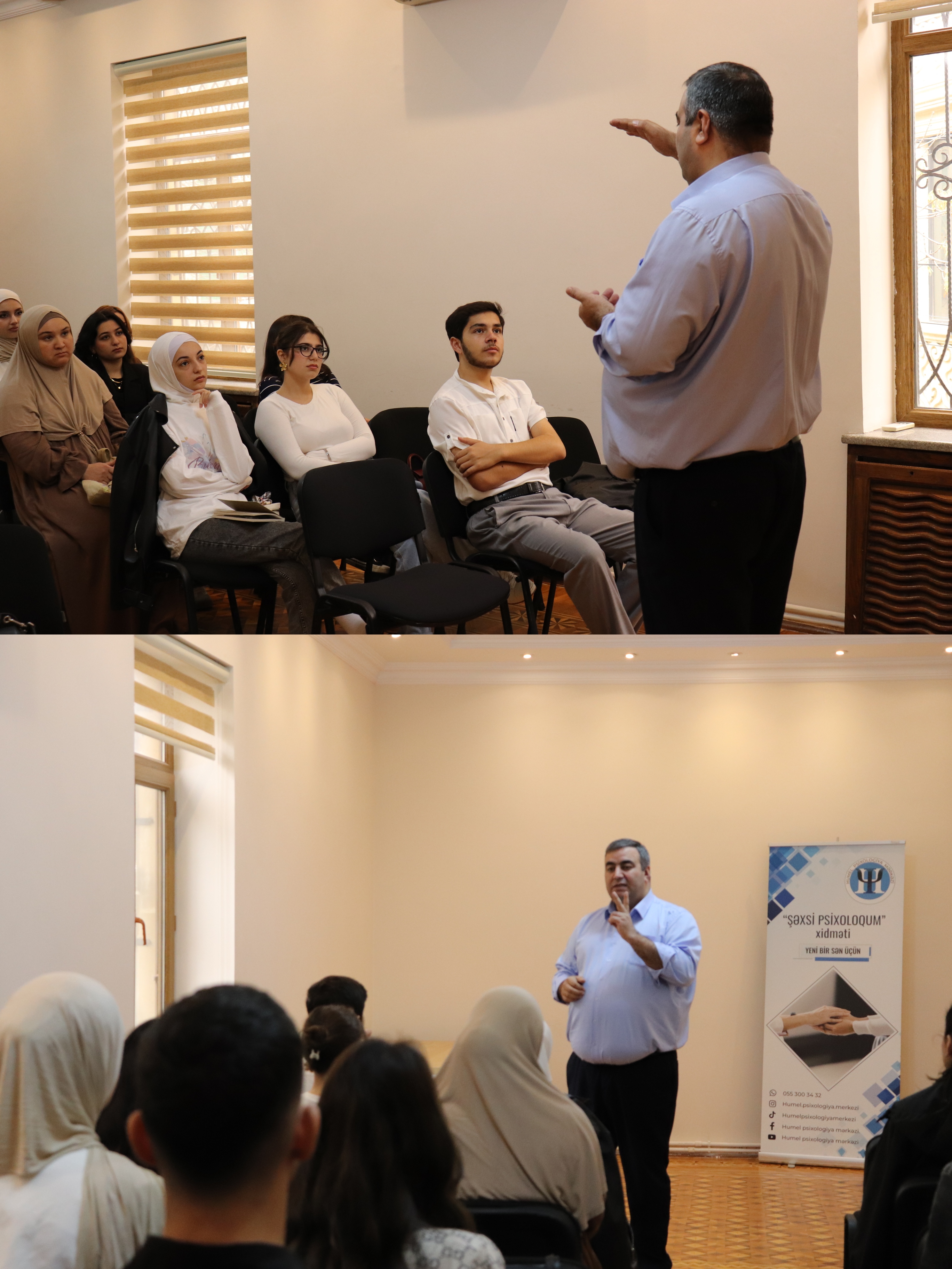 Humel Psixologiya Mərkəzinin təşkil etdiyi “Yaş Böhran Dönəmləri” seminarında iştirakçılar Psixoloq Taryel Faziloğlunun rəhbərliyi ilə həyat yaş mərhələlərinin psixoloji dinamikalarını daha dərindən anlama və onları fərdi inkişaf baxımından dəyərləndirmə imkanı qazandılar.